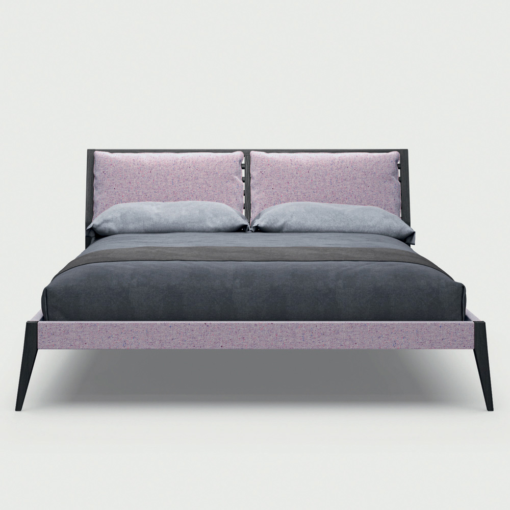 double bed in charcoal-stained wood with