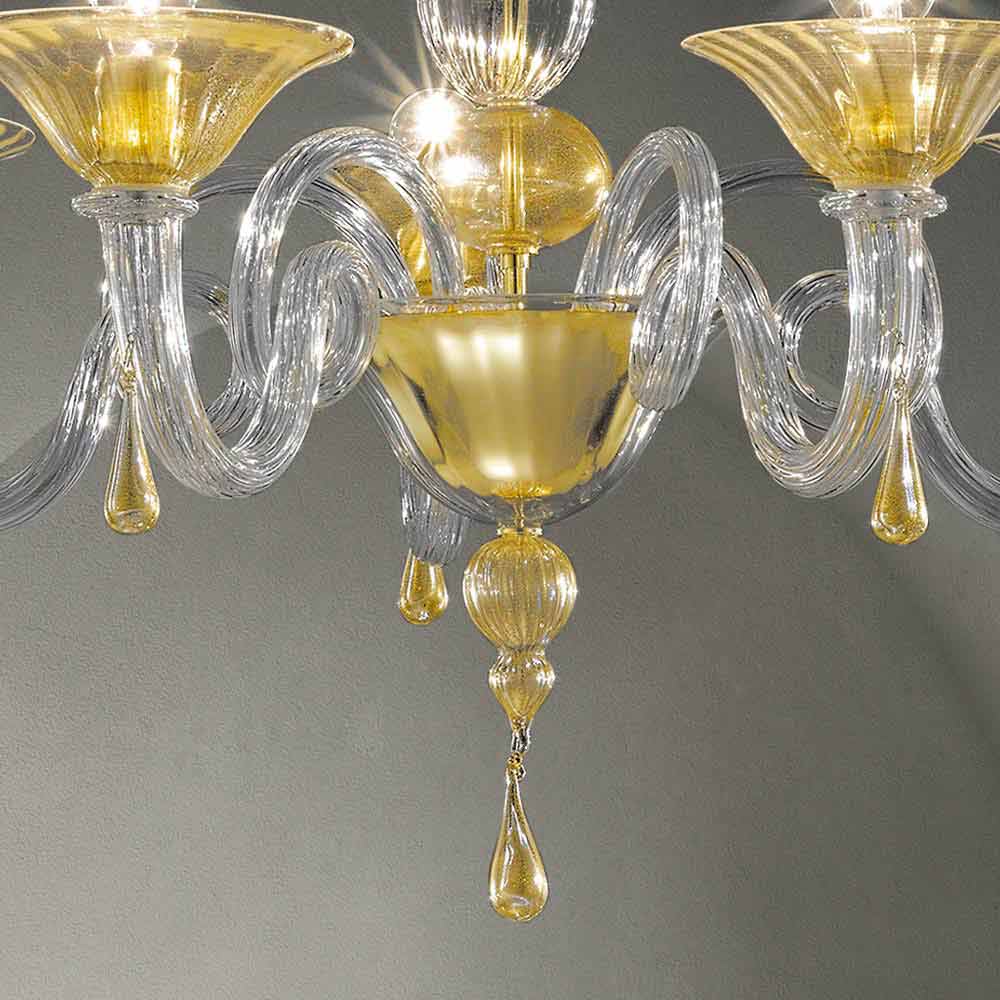 Handcrafted chandelier in Venetian glass and 24k gold, Made in Italy.