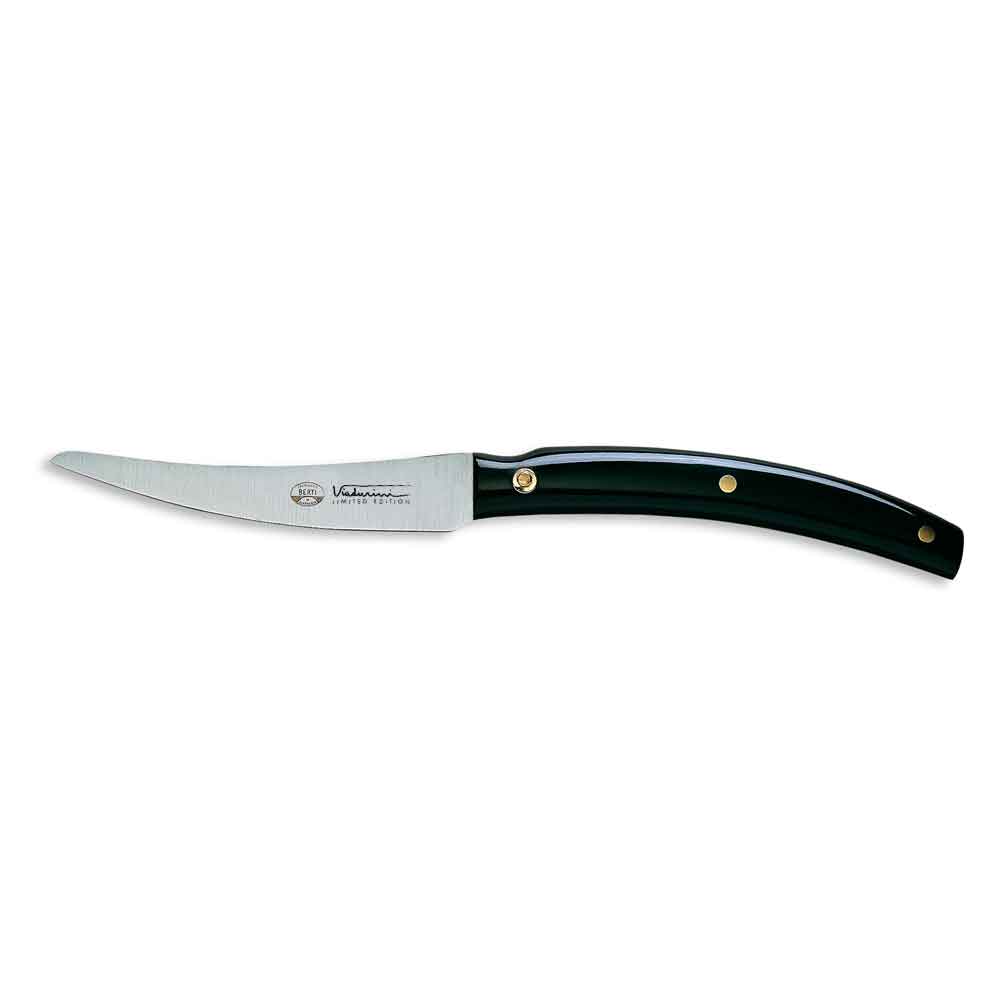 Table knife: often the most neglected in the choice must be strictly smooth in order not to weaken the meat and not to squeeze the taste, as happens with serrated blades. To savor dishes in their full flavour, with a sweet and precise cut. You won't have to throw it away once it has lost its edge, as with serrated blades, which cannot be sharpened.