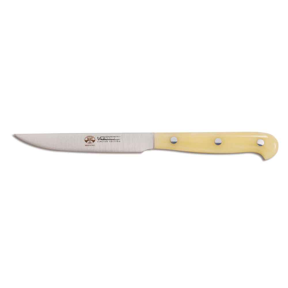 Table knife: often the most neglected in the choice must be strictly smooth in order not to weaken the meat and not to squeeze the taste, as happens with serrated blades. To savor dishes in their full flavour, with a sweet and precise cut. You won't have to throw it away once it has lost its edge, as with serrated blades, which cannot be sharpened.