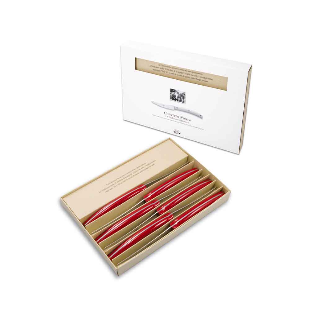 The versions with Plexiglas handles are dishwasher safe because all our Plexiglas handles undergo a special stabilization process which makes them dishwasher safe. Produced with high quality cutting steel, they can be put in the dishwasher only in the Plexiglas handle version, but it is good to be informed about the possible consequences:
