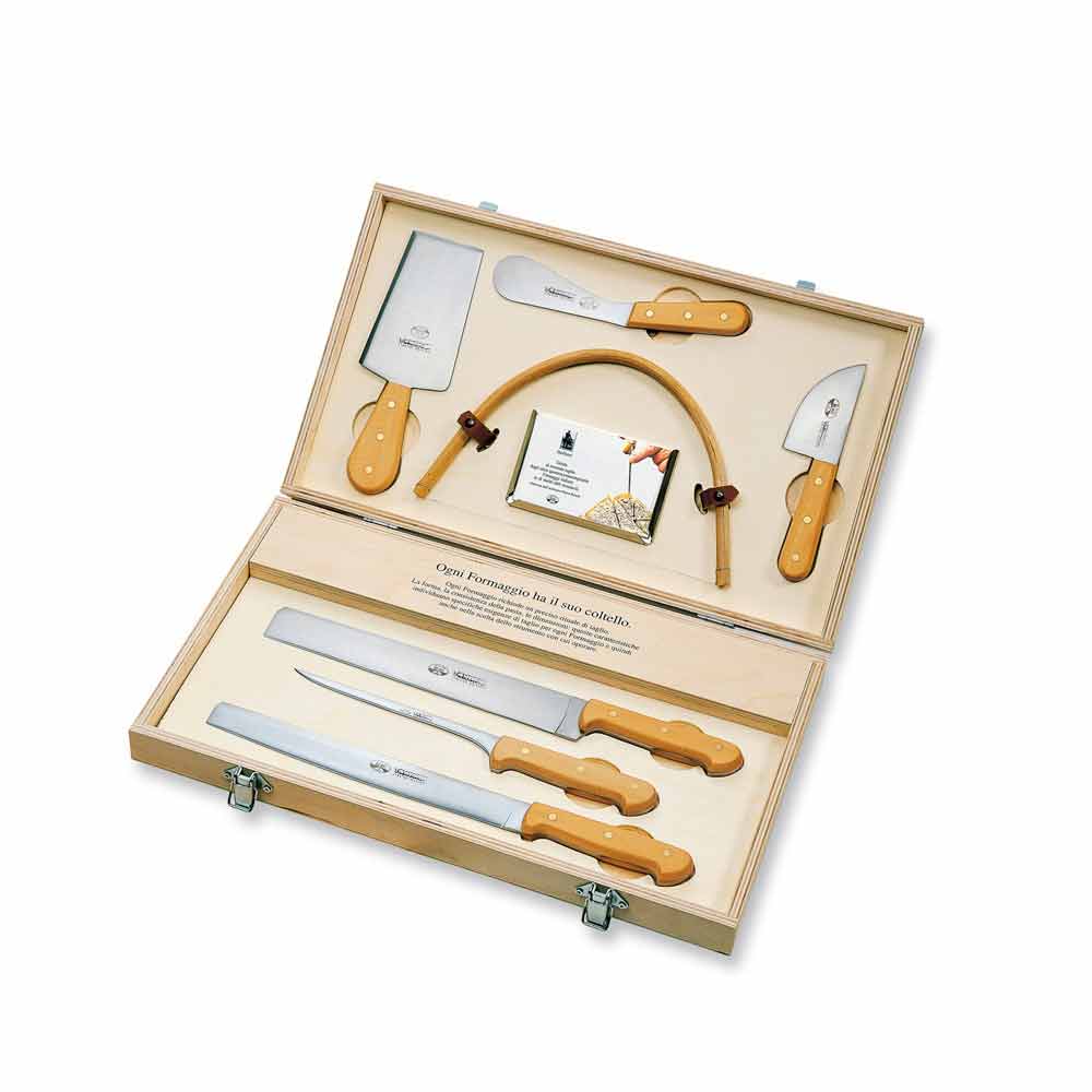 Box containing 7 essential knives for cutting over 450 Italian cheeses: