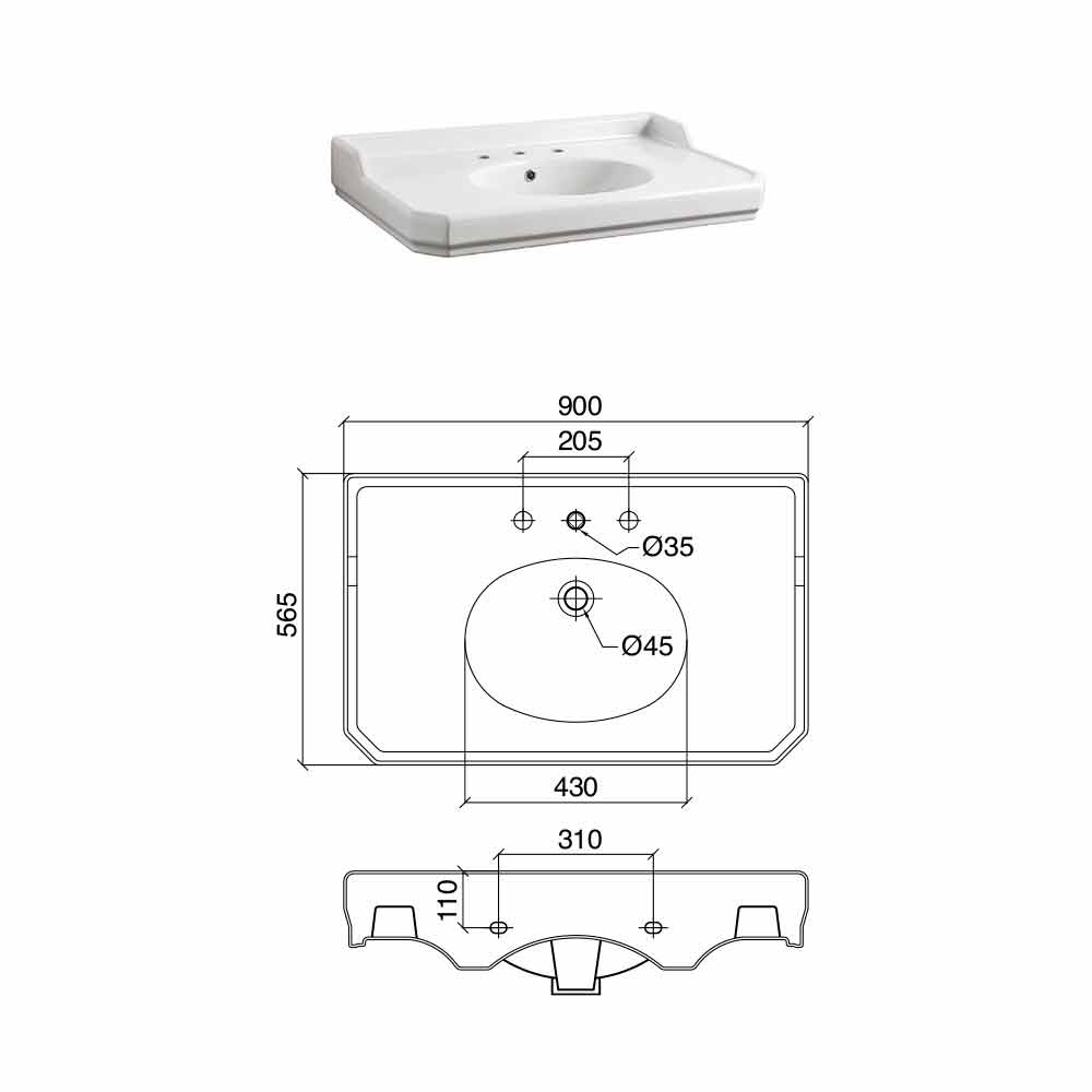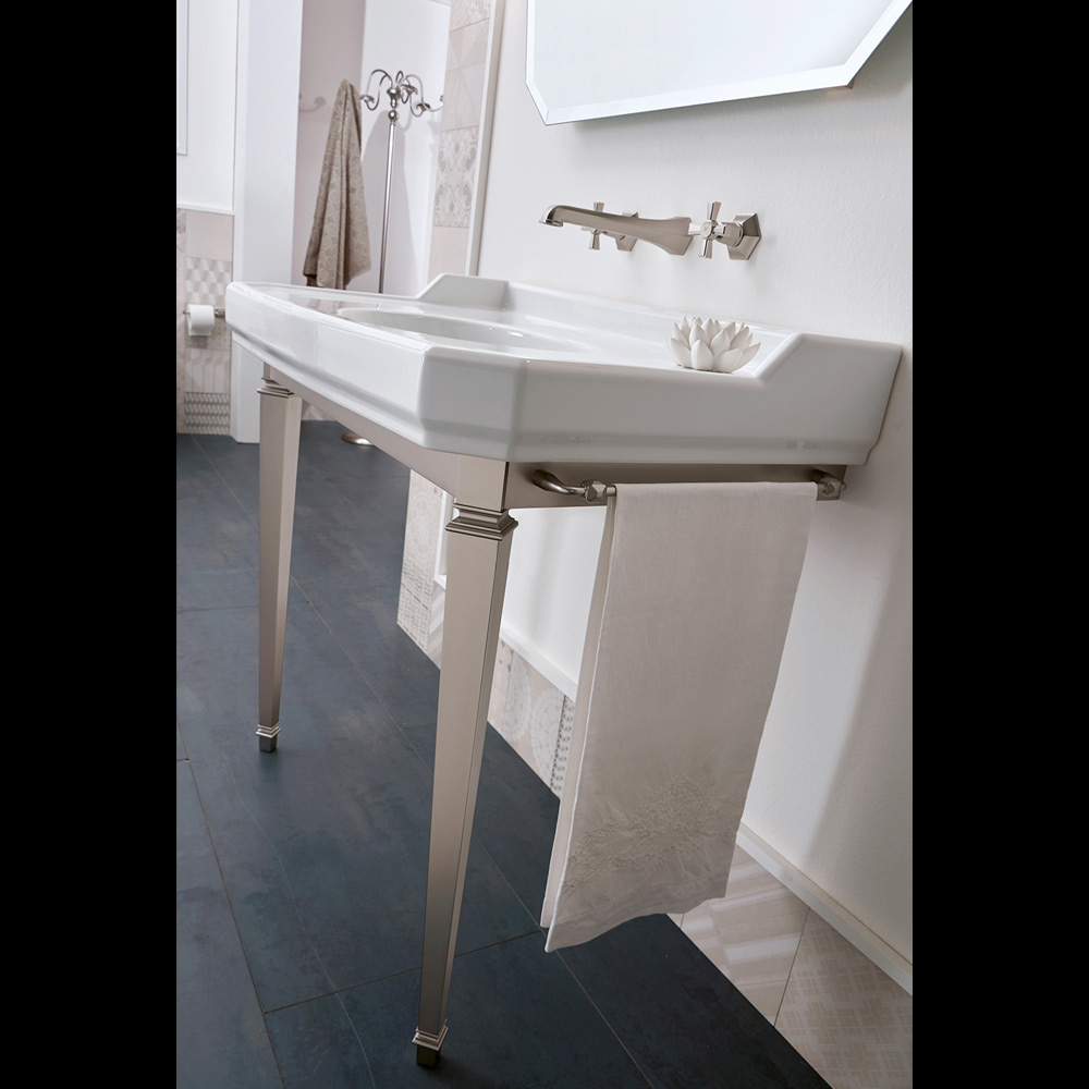 Nausica is an elegant console composed of a ceramic washbasin with a 900 mm long splashback, with 1 or 3 tap holes (specify the number of tap holes required when ordering). It is characterized by a charming classic and retro style , able to enrich the bathroom, giving it refinement. It combines functionality, an essential aspect for the bathroom area, and aesthetic value.