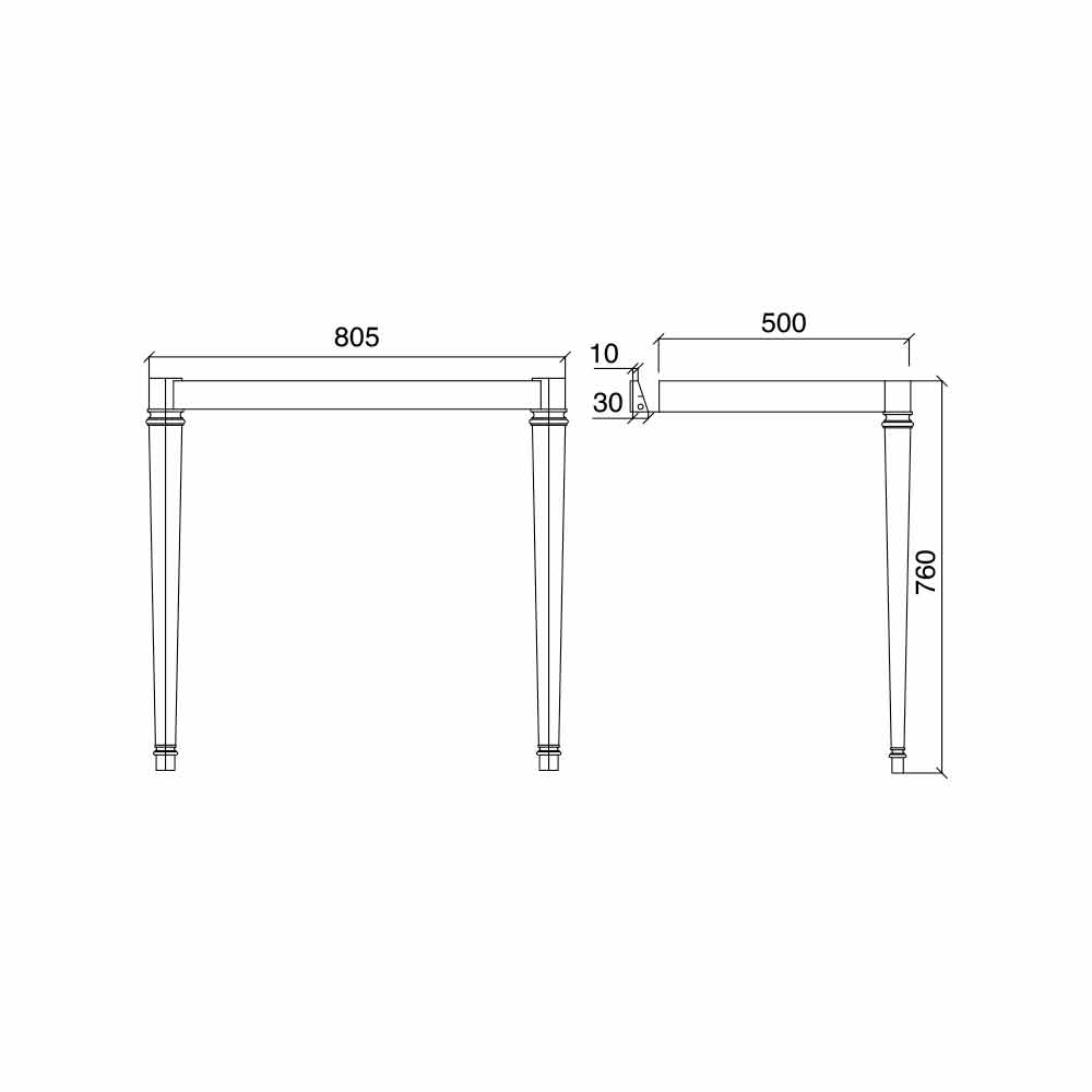 Vintage style white ceramic bathroom console with Nausica metal feet, made in Italy.