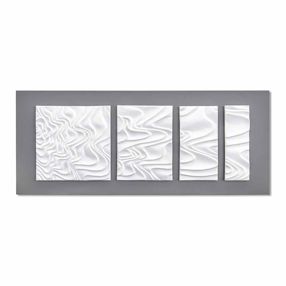 Modern design wall decoration in ivory white ceramic on quartz grey canvas made in Italy.