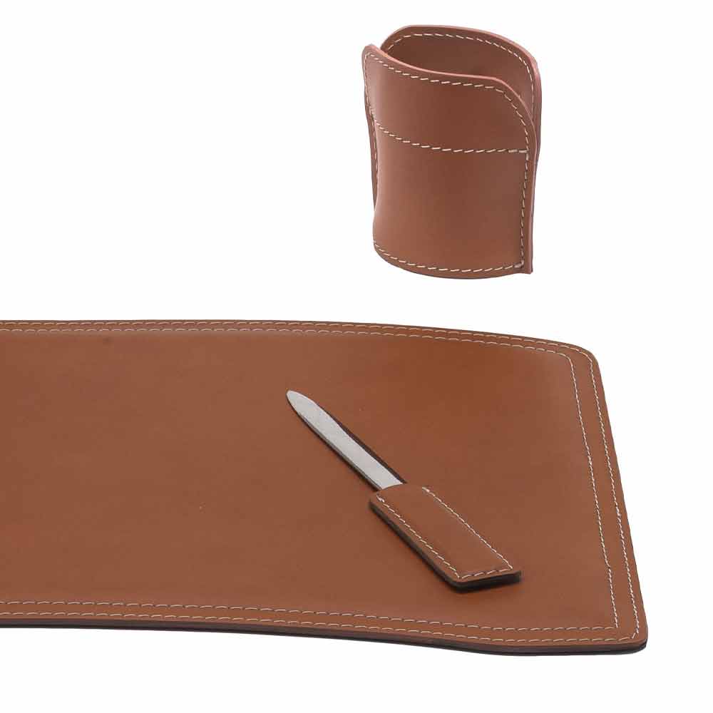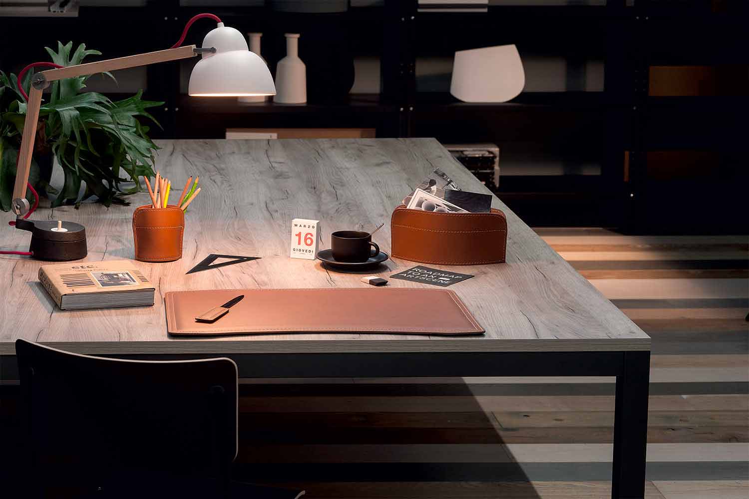 Desk accessories in designer regenerated leather, set consisting of 4 pieces, Made in Italy Brando