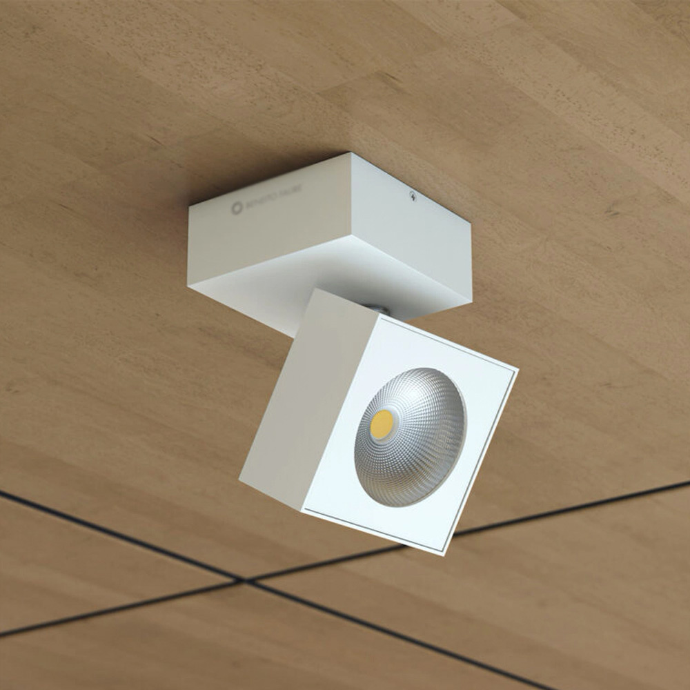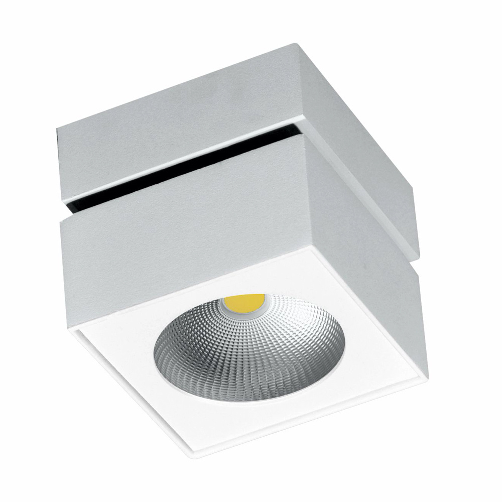 Decorative LED wall or ceiling spotlight with square aluminium structure.