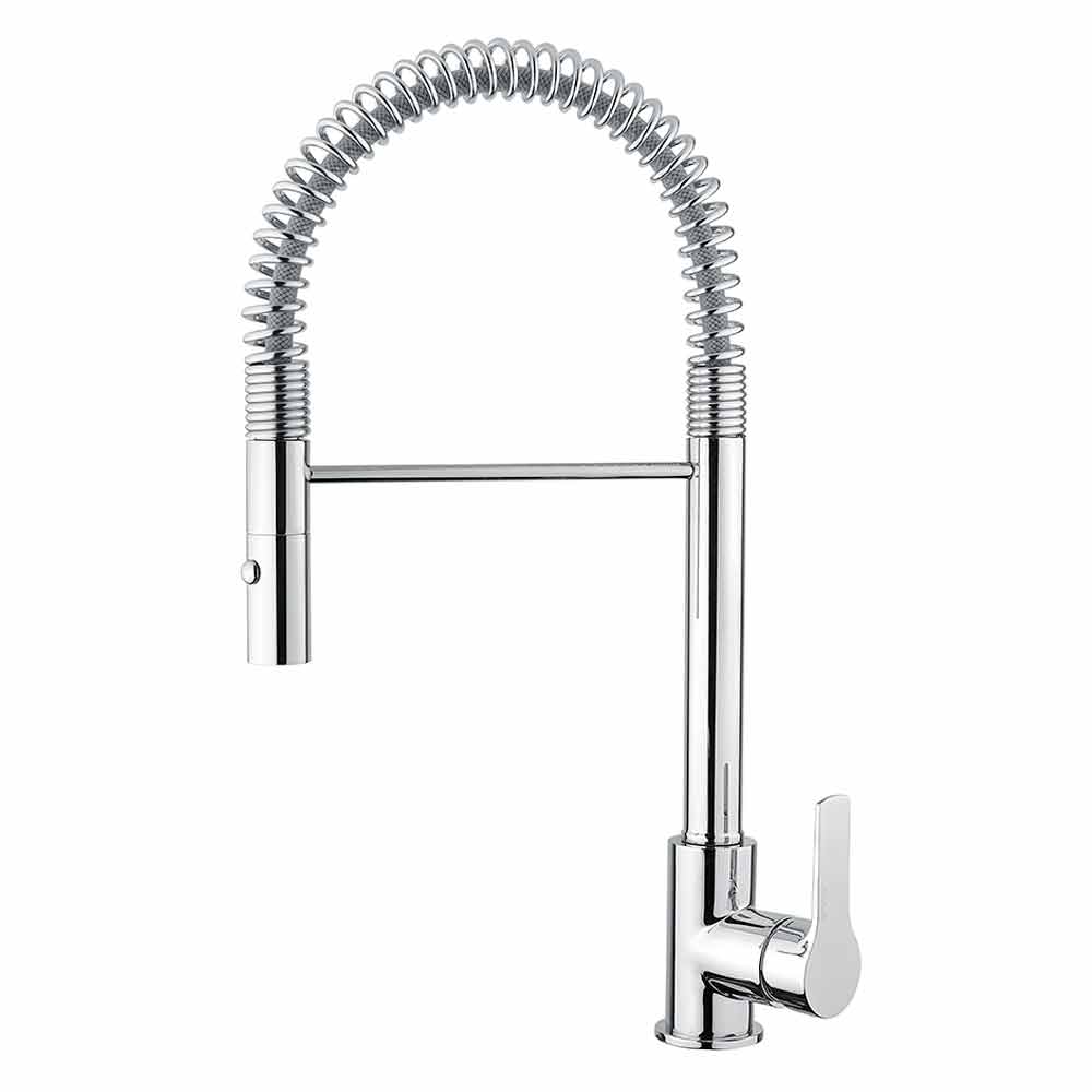 chromed brass . Thanks to the adjustable spout with spring and the 2-jet shower,