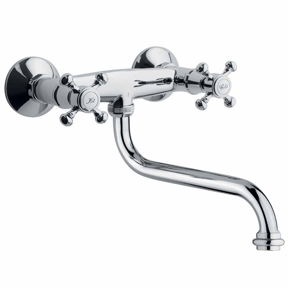 Wall-mounted washbasin group with adjustable spout in brass Made in Italy.
