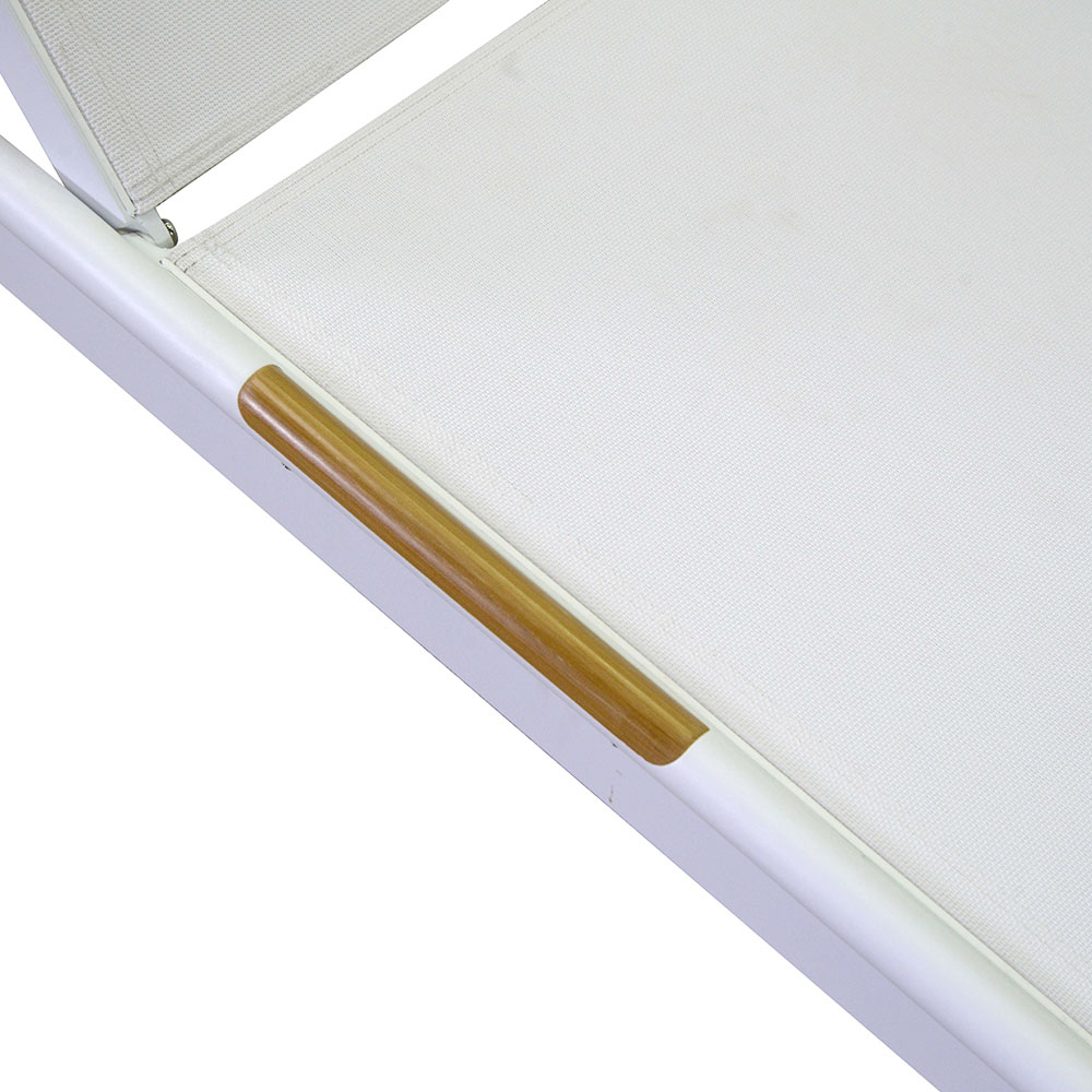 Elevate your outdoor space with our aluminium and textilene sun lounger , the perfect choice for those seeking style and comfort. This lounger combines a sturdy aluminium frame with a textilene seat, offering excellent resistance to the elements and unrivalled comfort for your days in the sun.