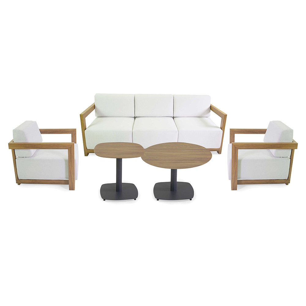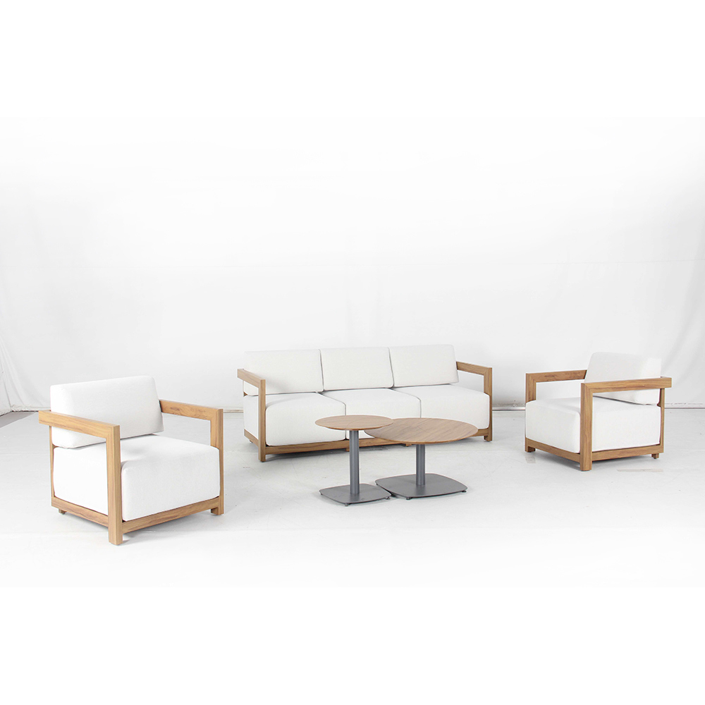 This lounge set is the embodiment of contemporary elegance, perfect for creating a welcoming and refined atmosphere in any outdoor space. Each piece combines clean lines and high-quality materials , with a sturdy wooden frame and cozy cushions in weather-resistant fabric, ensuring long-lasting comfort and minimal maintenance.