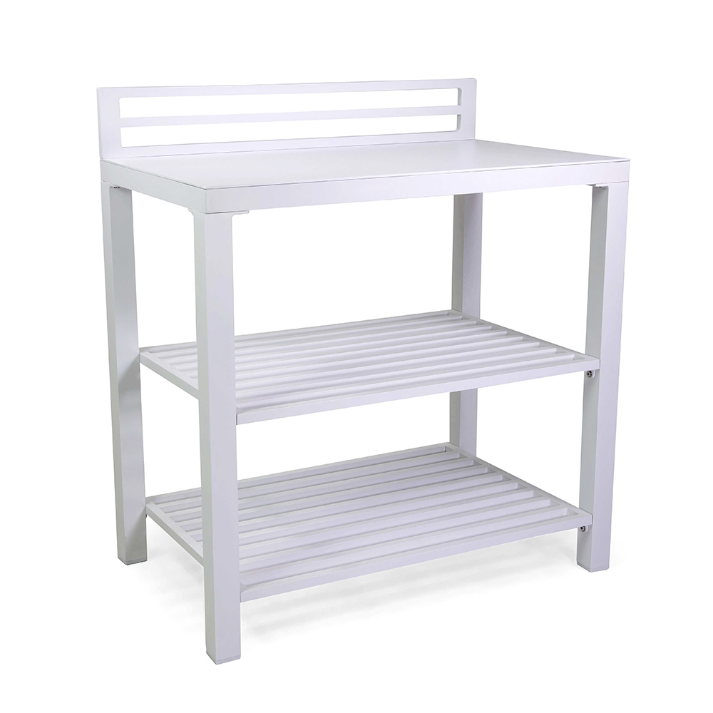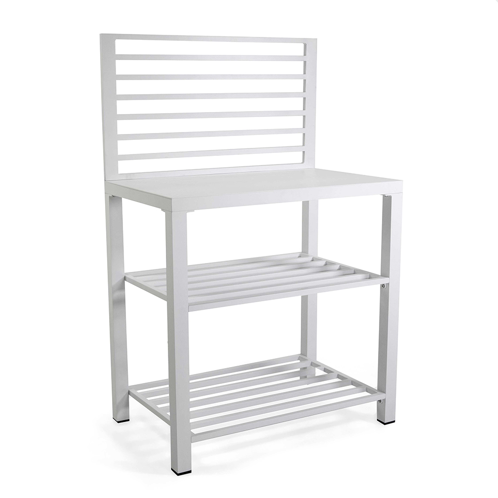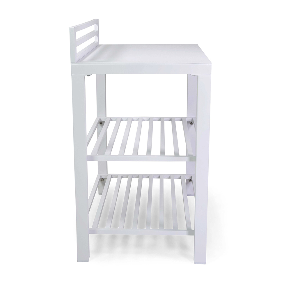 This multipurpose aluminium cabinet , with a clean and modern design, is the ideal solution for organizing and enriching any outdoor space. With its white finish, it fits perfectly with various styles of decor , from ultra-modern to classic. The sturdy aluminum structure ensures durability and stability, effectively resisting outdoor elements. Equipped with large shelves , it offers generous space for plants, decorations, or as a service station during your evenings outdoors. The minimalist lines and aerodynamic appearance make this cabinet an elegant and functional addition to terraces, gardens or balconies.