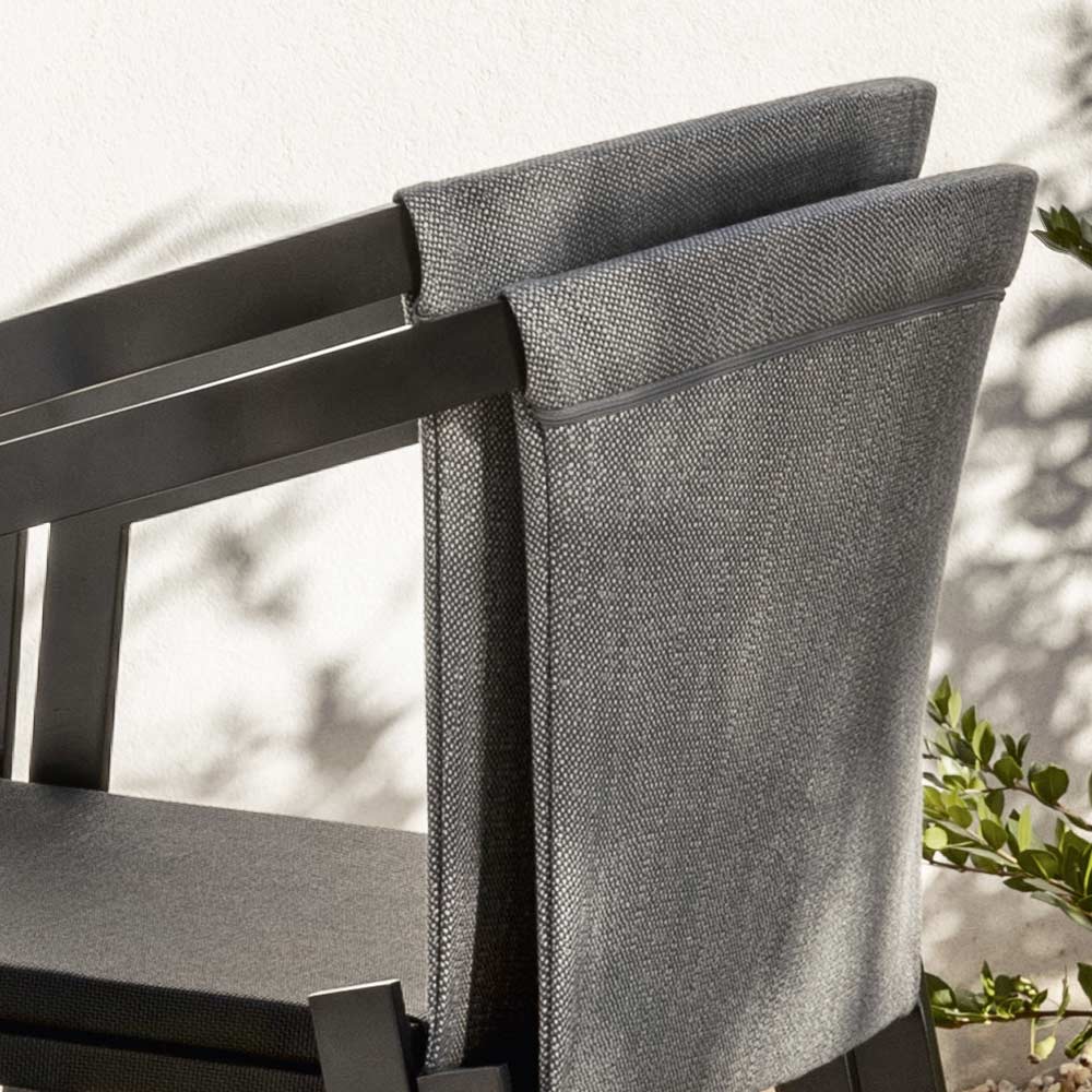 - gunmetal aluminium, black textilene and sunbrella fabric in zinc savannah