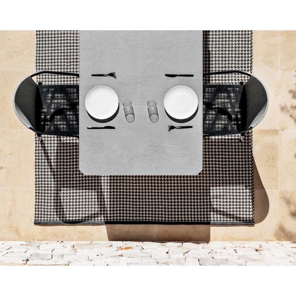 The collection is characterized by the detail of the aluminium leg as a focal point combined with the formal and modular rigor of the padding, to experience the outdoors in terms of maximum relaxation and conviviality, seated on the sofa, around a table or lying on the sunbed. .