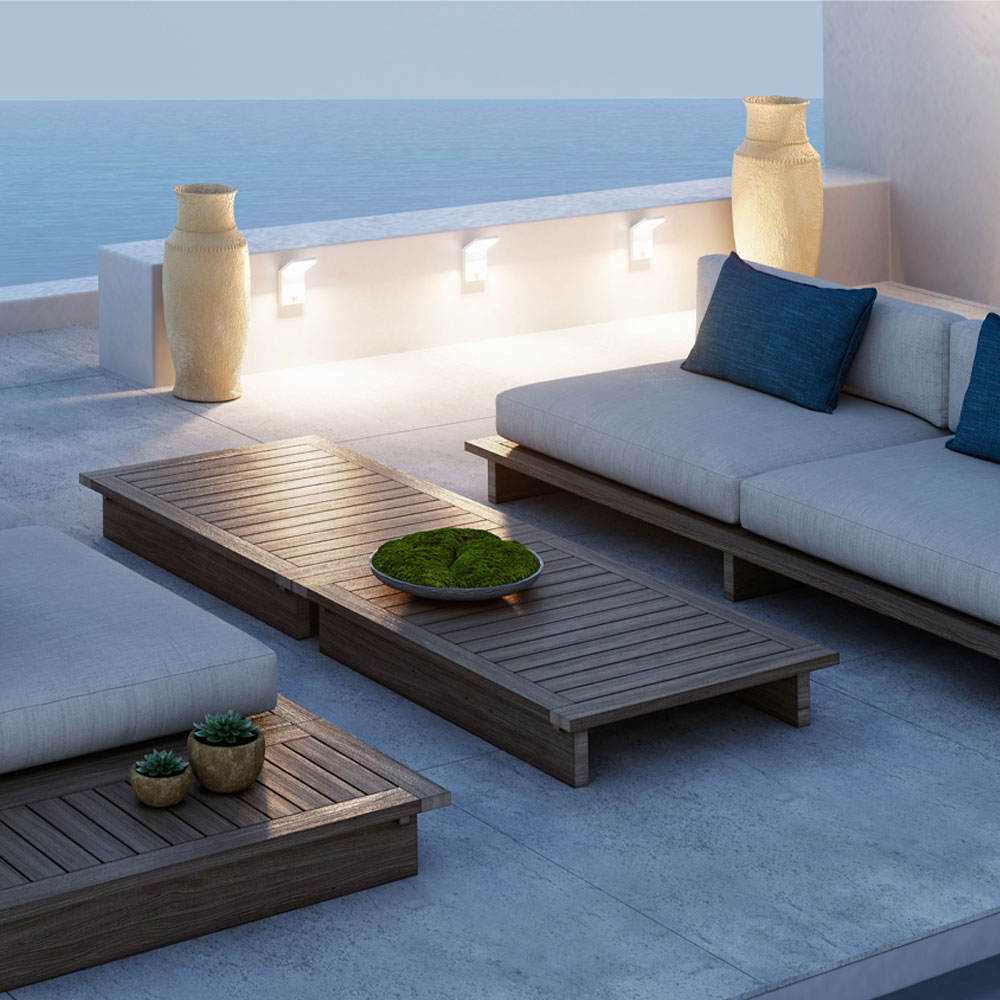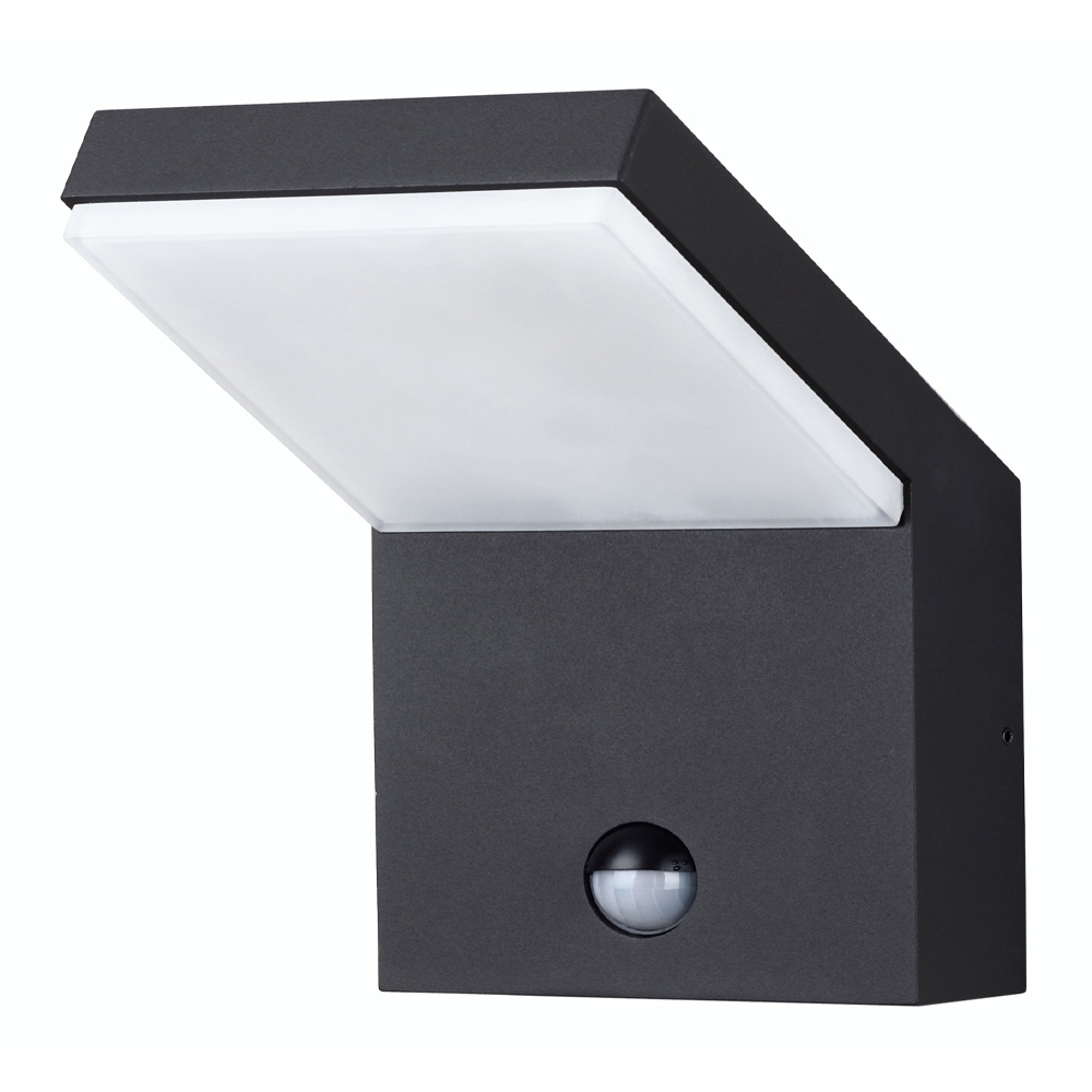 Outdoor led wall lamp in white or black aluminium with sensor.