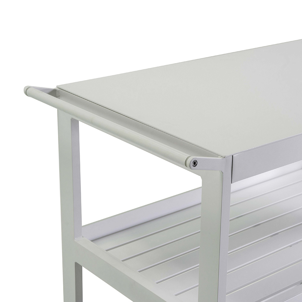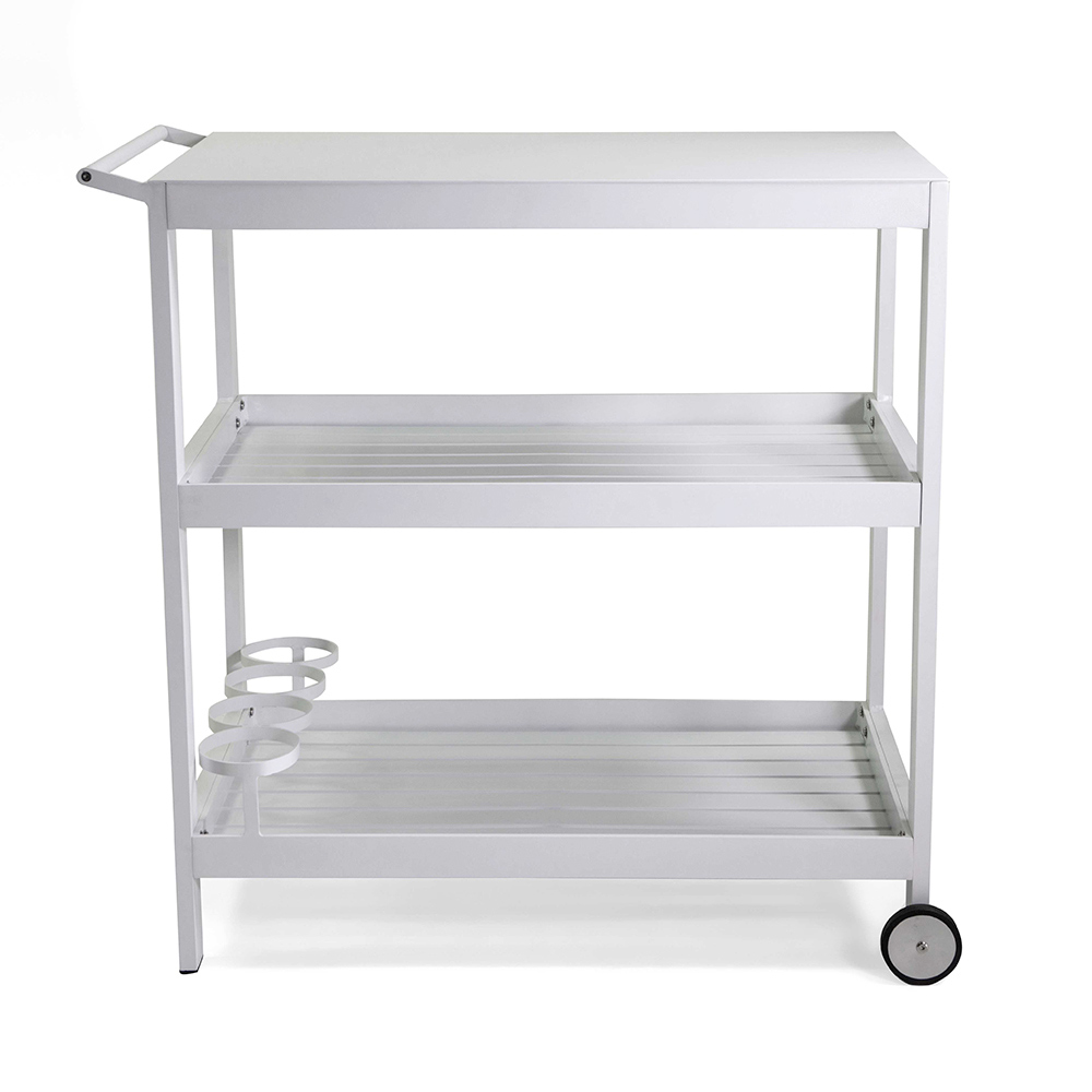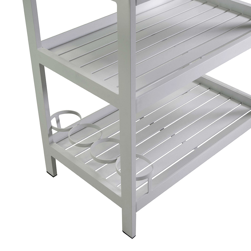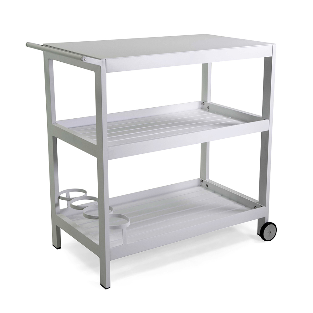 This multifunctional aluminium cart is the perfect solution for any outdoor space, combining functionality and style in a sleek, modern design. It easily matches any outdoor decor, providing a touch of class that will not go unnoticed.