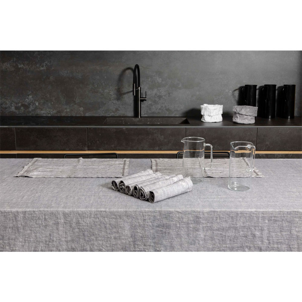 linen tablecloth embellished with a geomeric border. Made in Italy with high quality materials and made soft to the touch thanks to special treatments that enhance the natural appearance. Ideal for the table as it is apoallergenic and antibacterial, in addition to the use of natural and