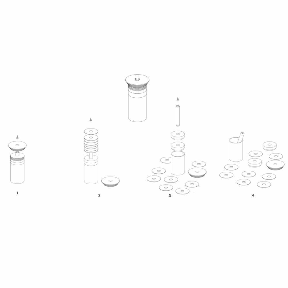 • 1 pestle in 316 stainless steel;