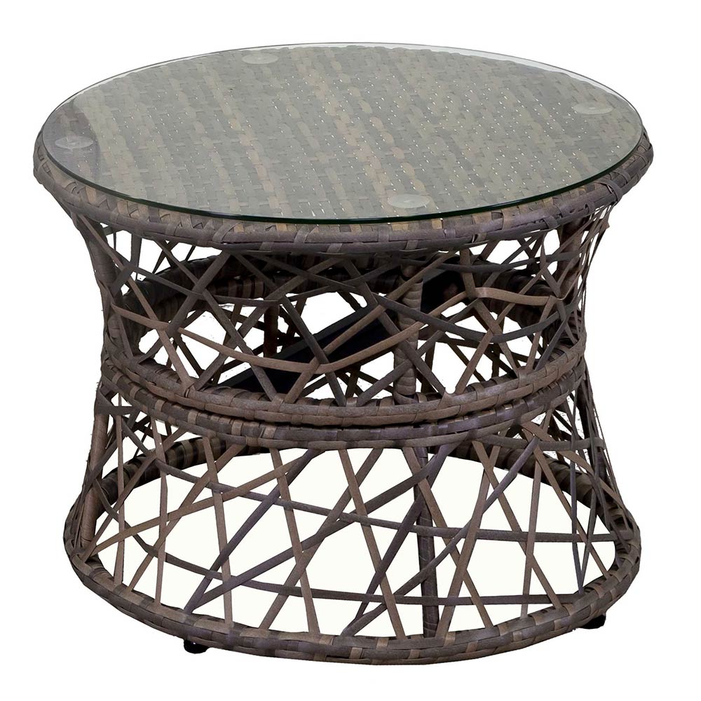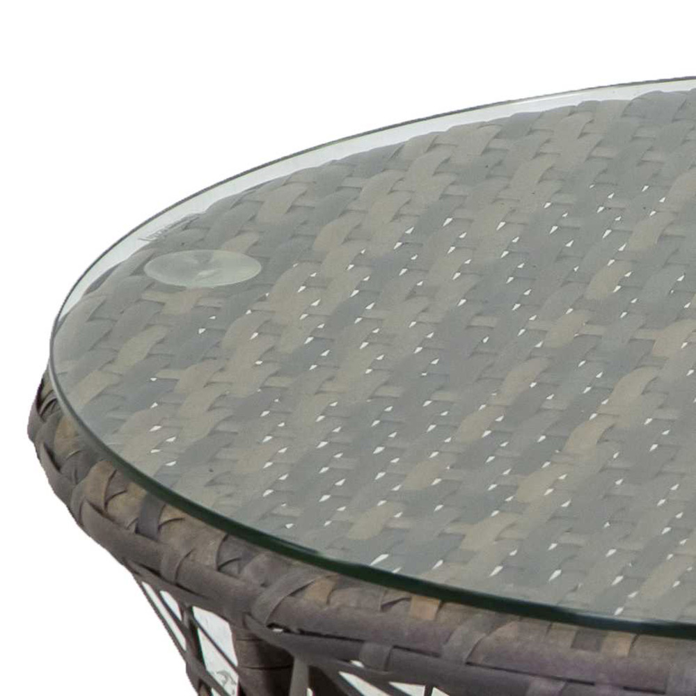The matching coffee table features a glass top, ideal for keeping drinks, books or decorations within reach. Its round shape and compact size make it versatile and easy to place next to the armchair or in any corner of your garden or terrace.