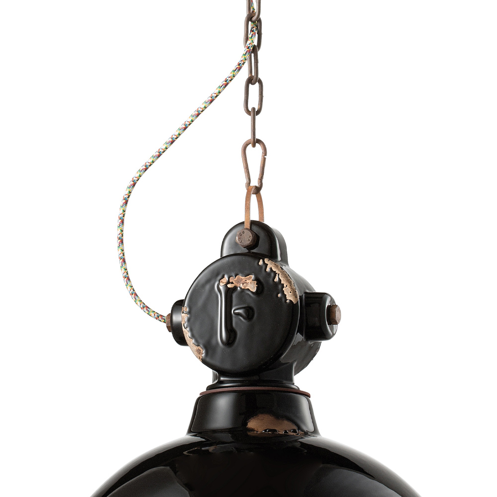 Industrial suspended lamp in ceramic and iron of various finishes, made in Italy craftsmanship by Ferroluce.
