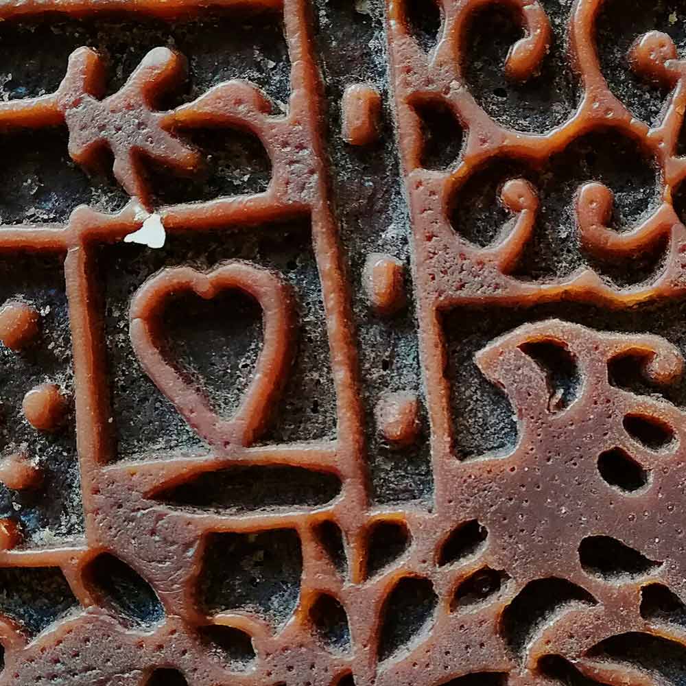 Handcrafted candle with ethnic design in brown wax scented with cinnamon Made in Italy.
