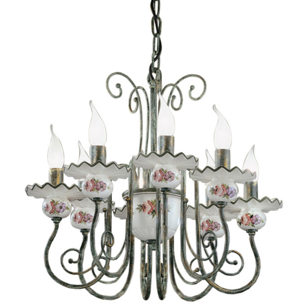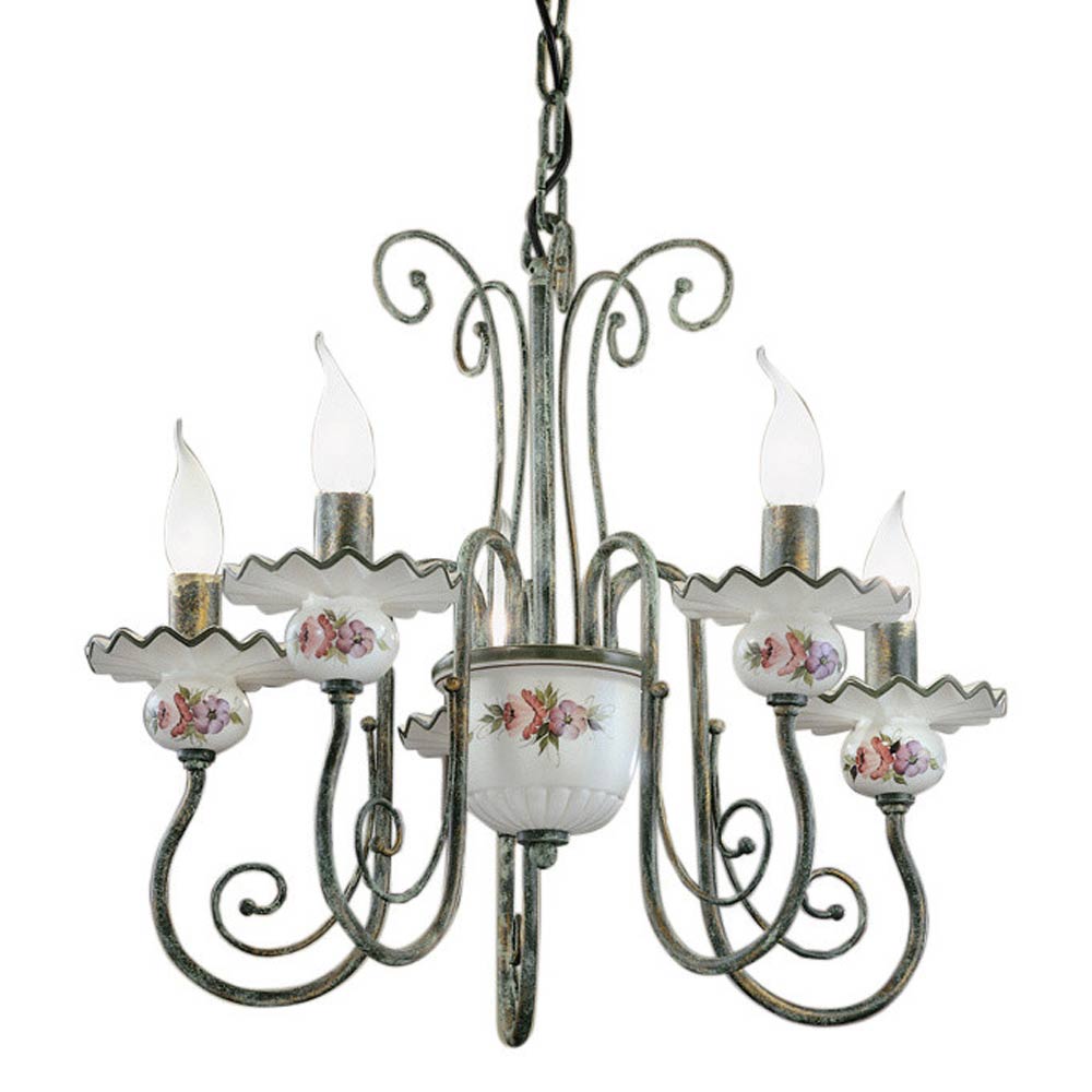 Handcrafted brass and hand-painted ceramic chandelier, 3 sizes made in Italy by Ferroluce.