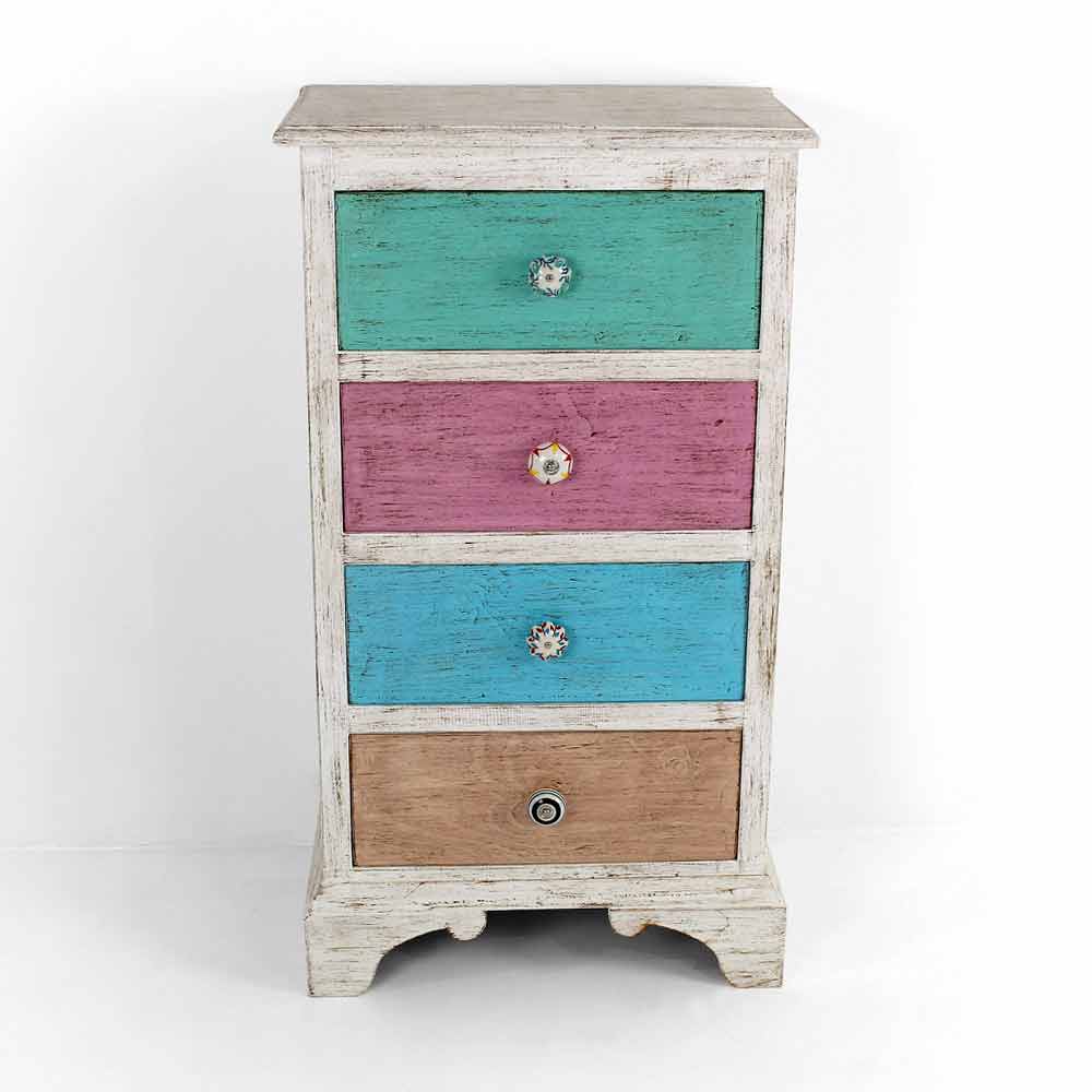 Handcrafted solid wood chest of drawers with 4 colored drawers, high quality Made in Italy.