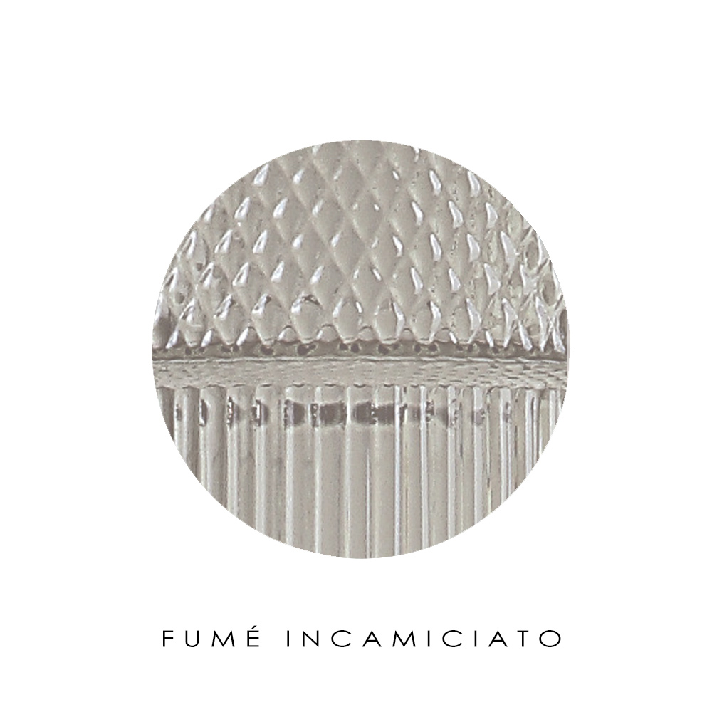 Rigata processing: processing technique that involves the use of a mould with small queues and rhombus engraving into which the glass is blown to create a wonderful visual and tactile effect.