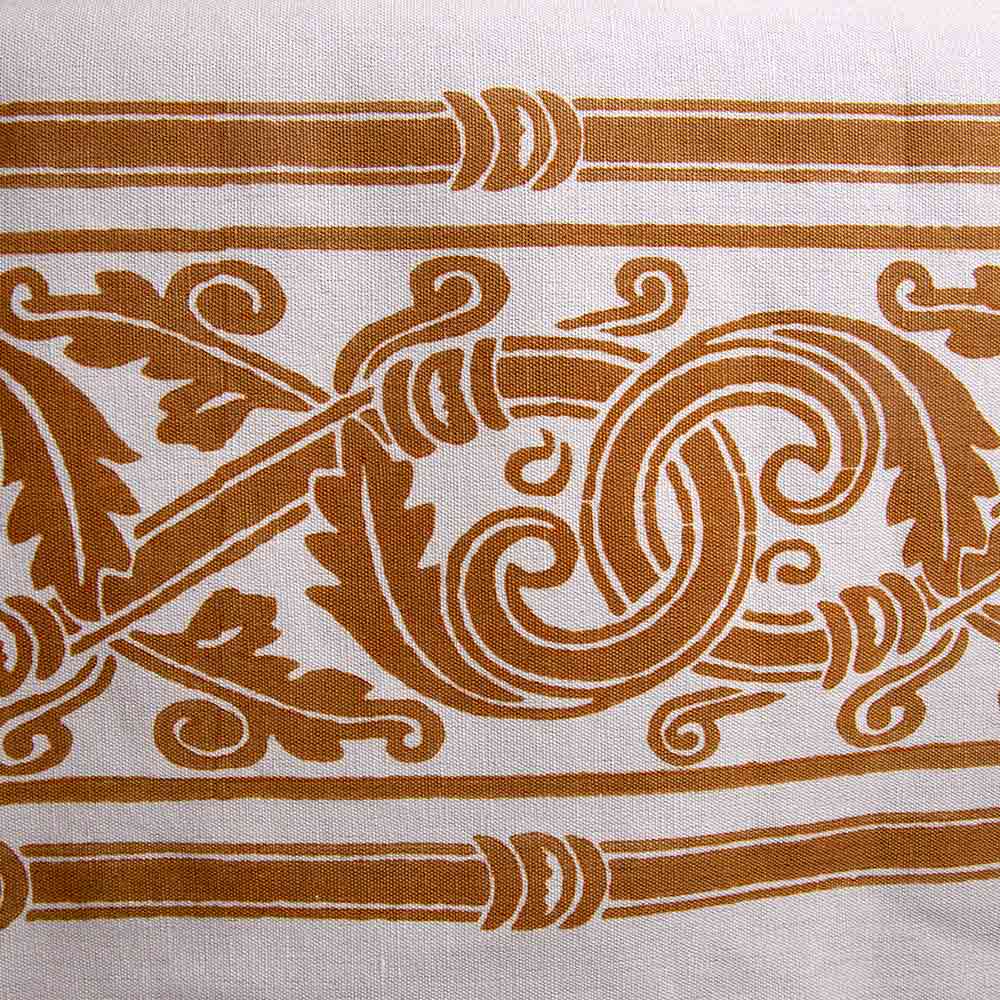 - Hand printing: great skill for this phase that takes place by hand with wooden molds in which the design was engraved by hand. The colour is spread on the pad where the mould is dipped, which is then positioned on the fabric and with a heavy wooden mallet it is beaten over the mould to impress the design on the fabric.