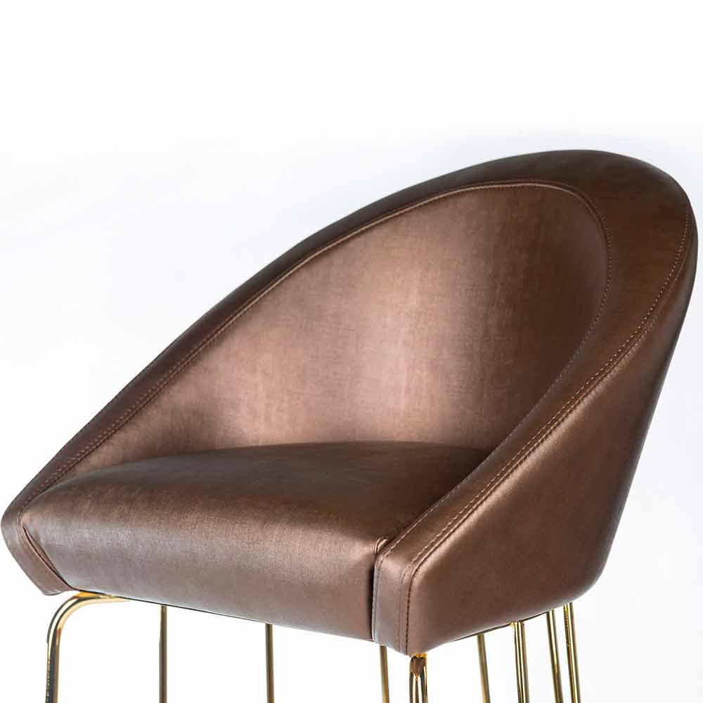 Bar stool, characterized by a modern design and a comfortable padded seat and back. It is characterized by a refined and modern design.