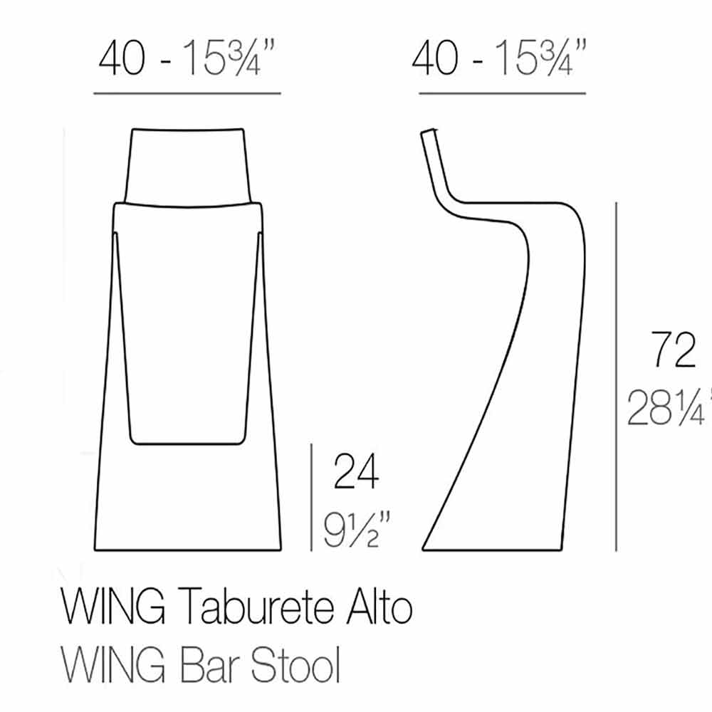 The Wing collection was made by the A-cero group. Born from the interweaving of straight queues and curves in a dynamic way. These curves and extreme angles represent a typical trait of architecture, moving towardss a free, delicate and organic queue, which generates movement and separates from any previous trace of excessive rigidity. These are bold pieces that make up a set of furniture with a huge visual impact. The Wing bar stool is made of polyethylene, a material resistant to shocks, UV rays and temperature changes. Perfect therefore for outdoor spaces.