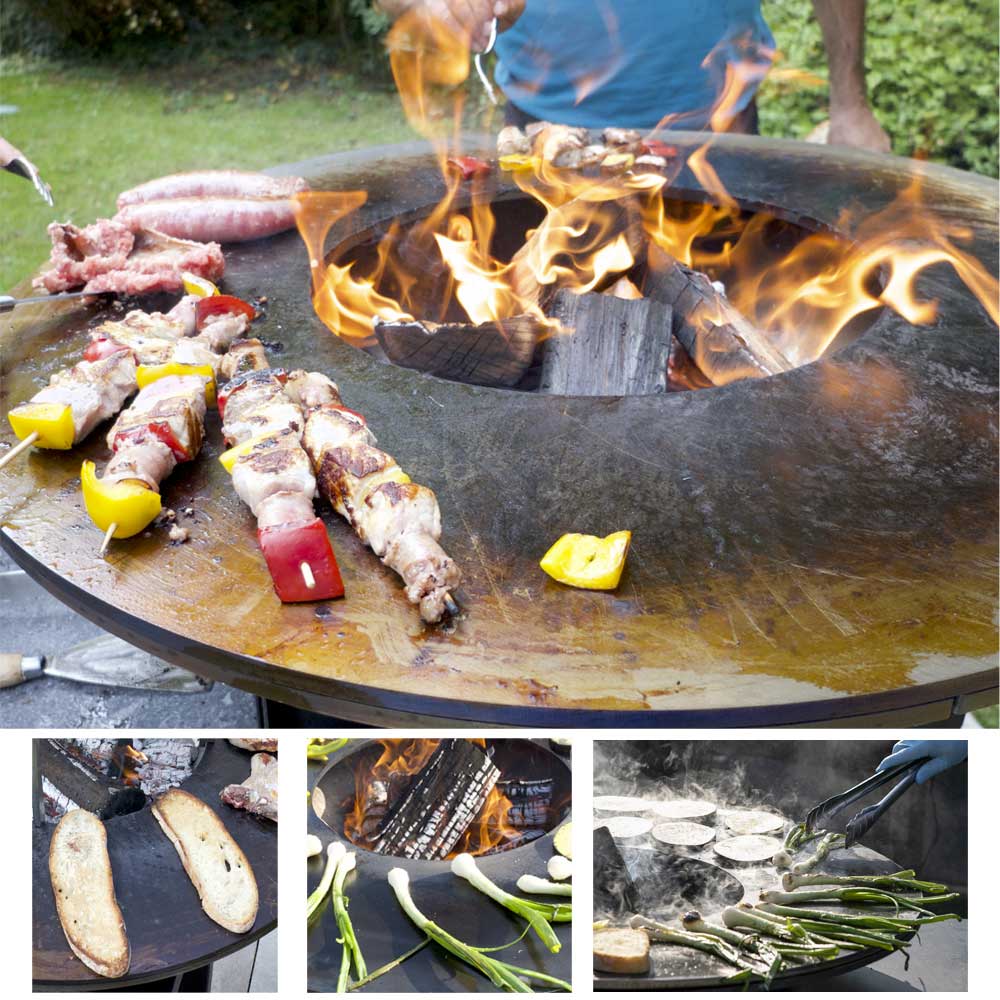 For all those who want to cook around the fire without giving up the pleasure of conviviality and the warmth of a good hot meal just cooked.