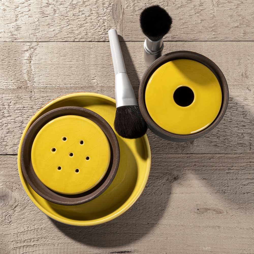 handmade in Italy enameled inside in a yellow finish, a warm and sunny colour that transmits positivity and energy from the first glance. Each element of the composition is characterized by particular details such as the