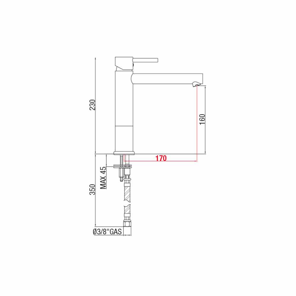 Available sizes:- H 230 mm, centre distance 130 mm;