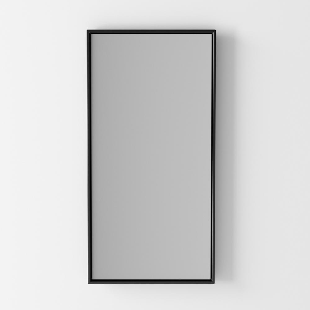 Bathroom furniture composition entirely made in Italy including a sink, base and mirror. The washbasin is made of colored ceramic and has a statuary aesthetic with a strong personality, designed for modern and sophisticated environments. The base has an elegant stainless steel structure in matt black finish. Finally, the composition is completed by the rectangular backlit wall mirror with aluminum frame in matt black finish.
