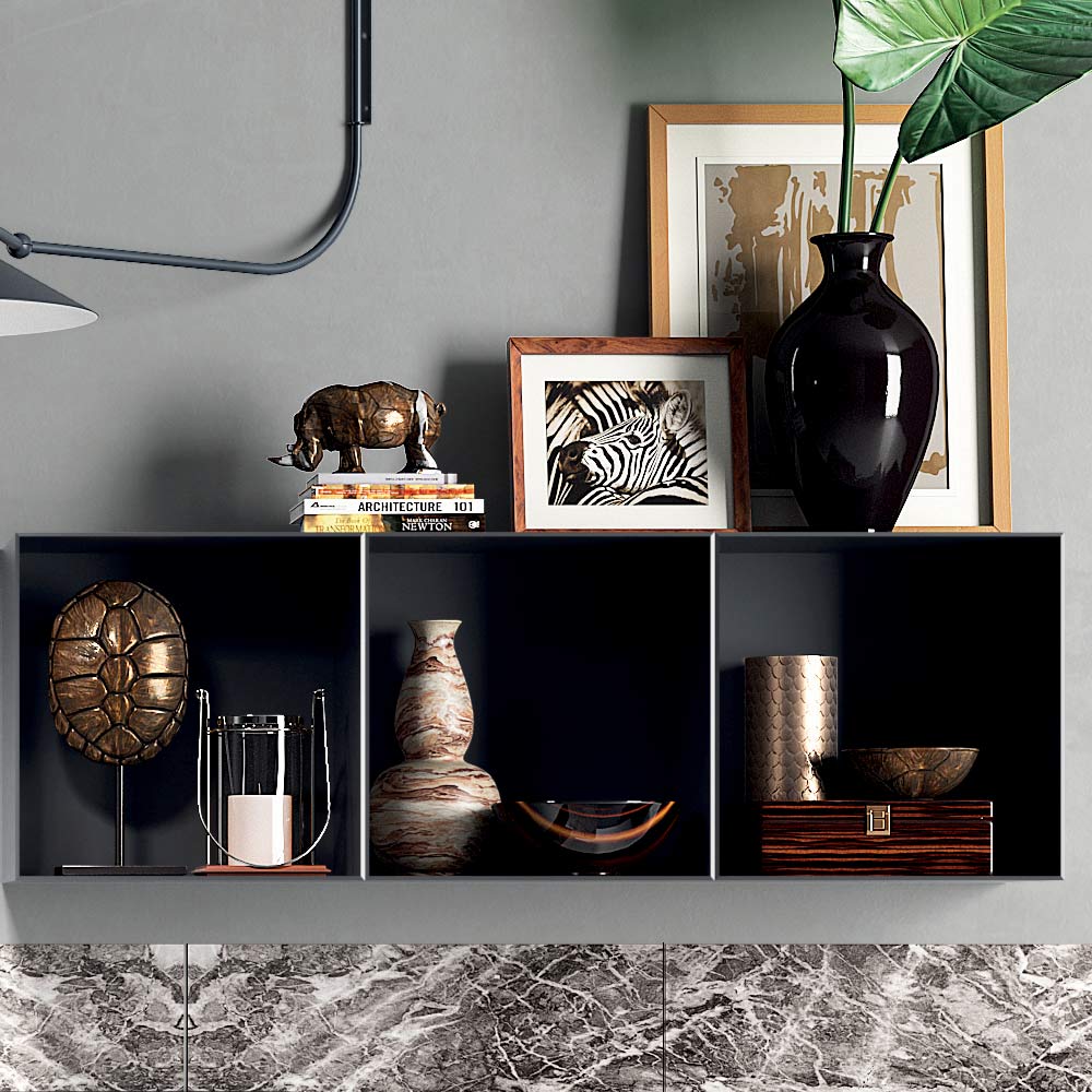 fully extractable drawer and soft close closure. Also included are the 3 hanging cubes in matt black lacquered metal.
