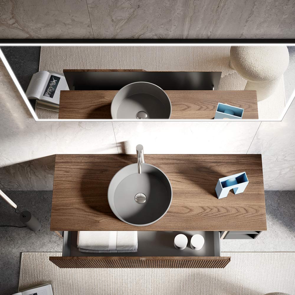 This bathroom composition was created to combine modern style with functionality so as to be able to respond to different design needs and be able to give a unique touch to the space. The simple and linear finishes make this furniture elegant and chic at the same time and blend with the great quality and resistance of the materials used for its creation.