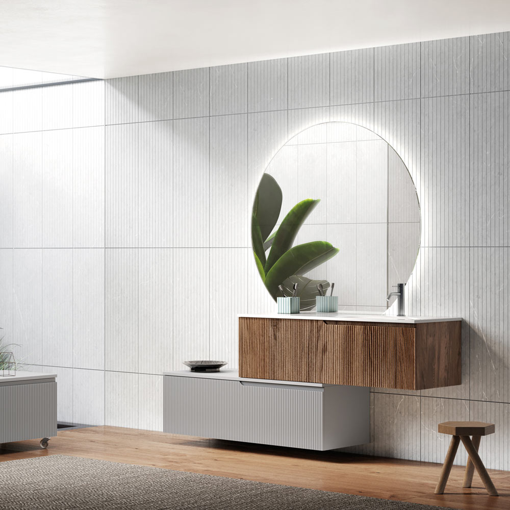 Italian tradition. This is how emotional products are born that materialize the elegant and pleasant experience of the bathroom environment, through the exaltation of the values of the materials used, such as research and innovation.