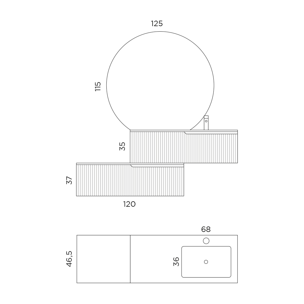 - Washbasin: Length 121 x Depth 46.5 x Height 1.6 cm - Bowl length 53 cm