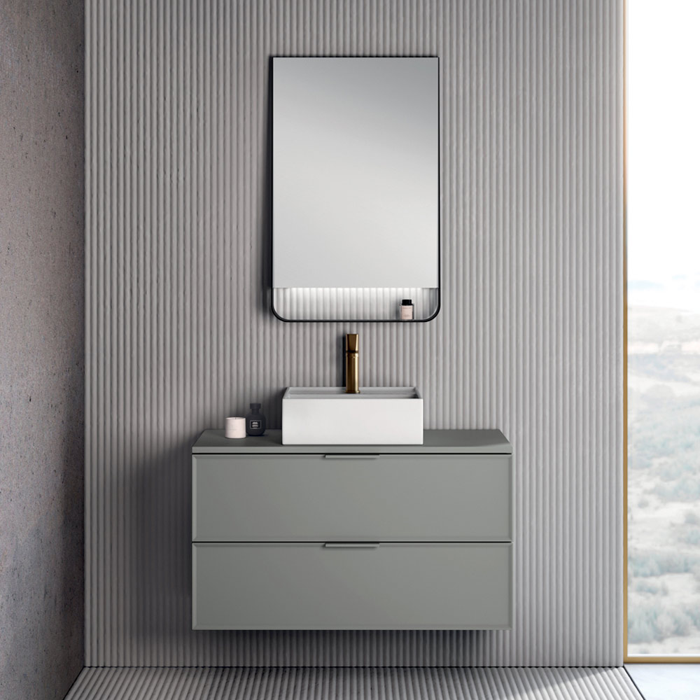 A refined, modern bathroom composition with a simple and elegant character, ideal for contemporary and minimalist spaces. The matte gray finish lends a sense of sobriety and versatility, easily adapting to a variety of interior design styles.
