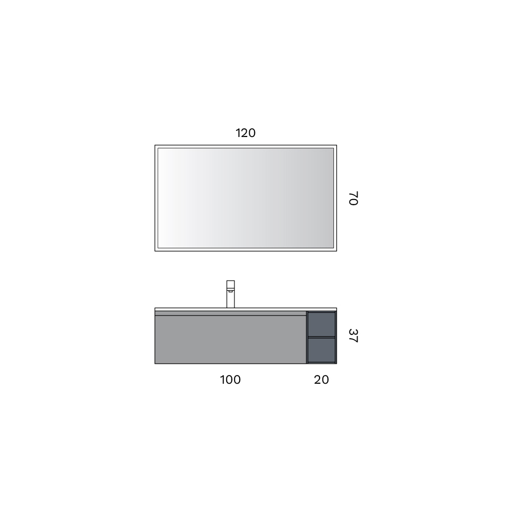 • Mirror: length 120 cm x height 70 cm