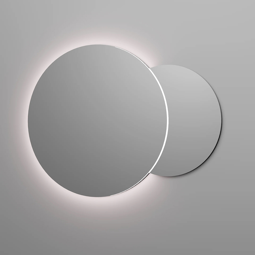 The two backlit mirrors amplify the brightness of the space, creating a sophisticated and enveloping atmosphere. The integrated light defines the volumes and contributes to a modern and functional space.
