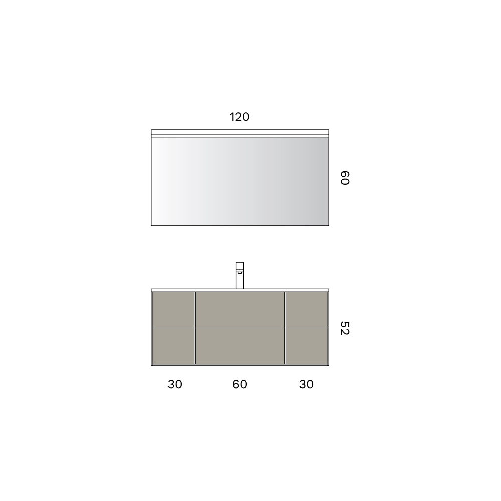 • Mirror: length 120 cm x depth 2.5 cm x height 60 cm