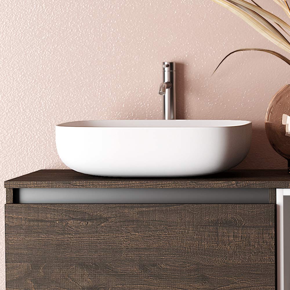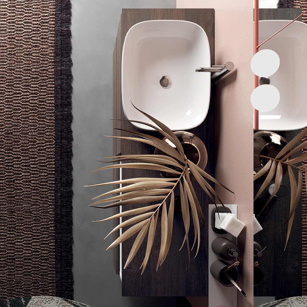 Bathroom composition with dark brown base and Made in Italy ceramic sink.