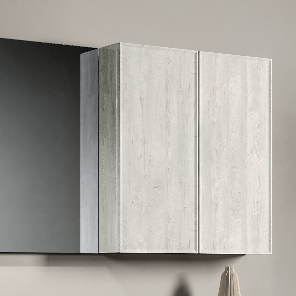The Alaska oak suspended bathroom cabinet stands out for its light, natural finish, which enhances the brightness of the room and adapts perfectly to contemporary, minimalist settings.
