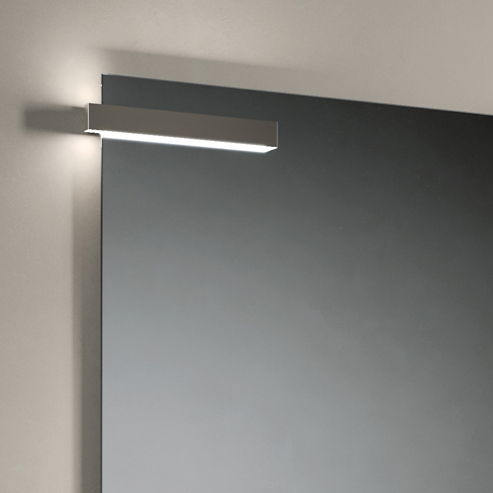 The composition is completed by the rectangular mirror and the LED lamp , which ensure functional and scenographic lighting, ideal for enhancing the sink area and improving visual comfort.