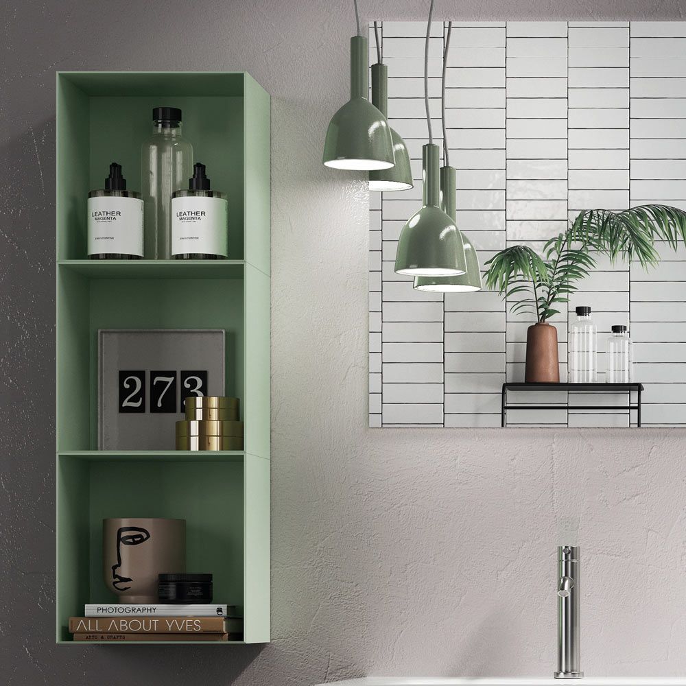 Also included are the 3 suspended cubes in pale green RAL6021 lacquered metal.