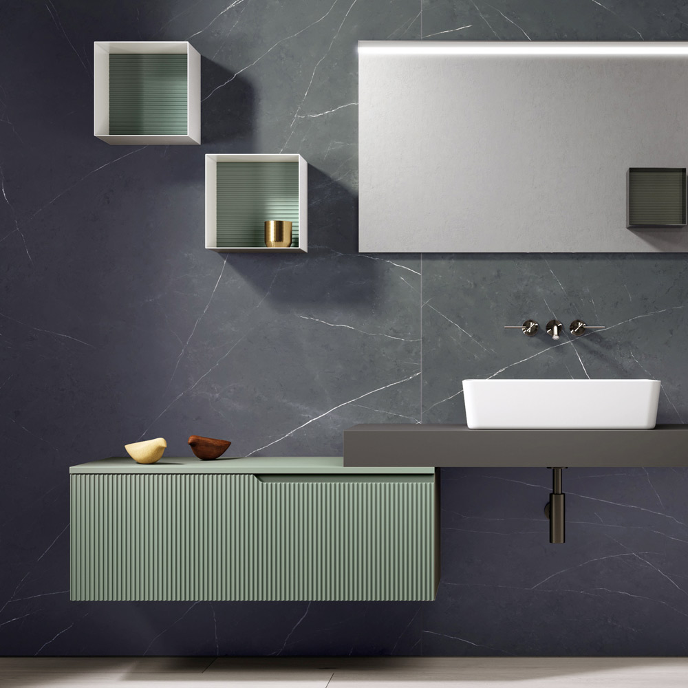 Bathroom composition in ribbed sage green MDF Made in Italy