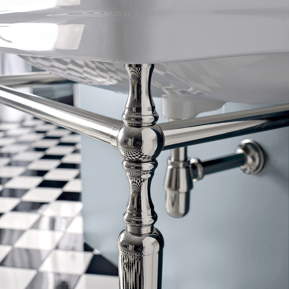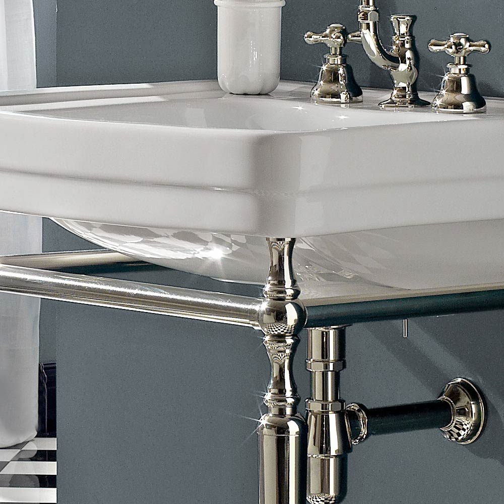 The right combination of ceramic and metal makes this console ideal for decorating any bathroom style.