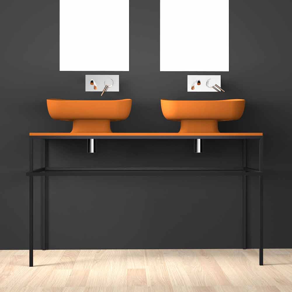Reale is an extraordinary double countertop sink handmade in Italy in pottery and chracterized by a functional and ultramodern design; perfect to be integrated in any kind of bathroom style.